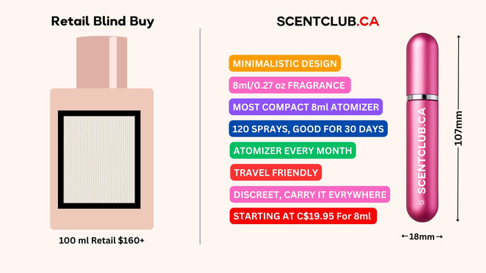 Choose a plan to get 1, 2, or 3 scents per month in an 8ml (0.27 oz) atomizer each month.
